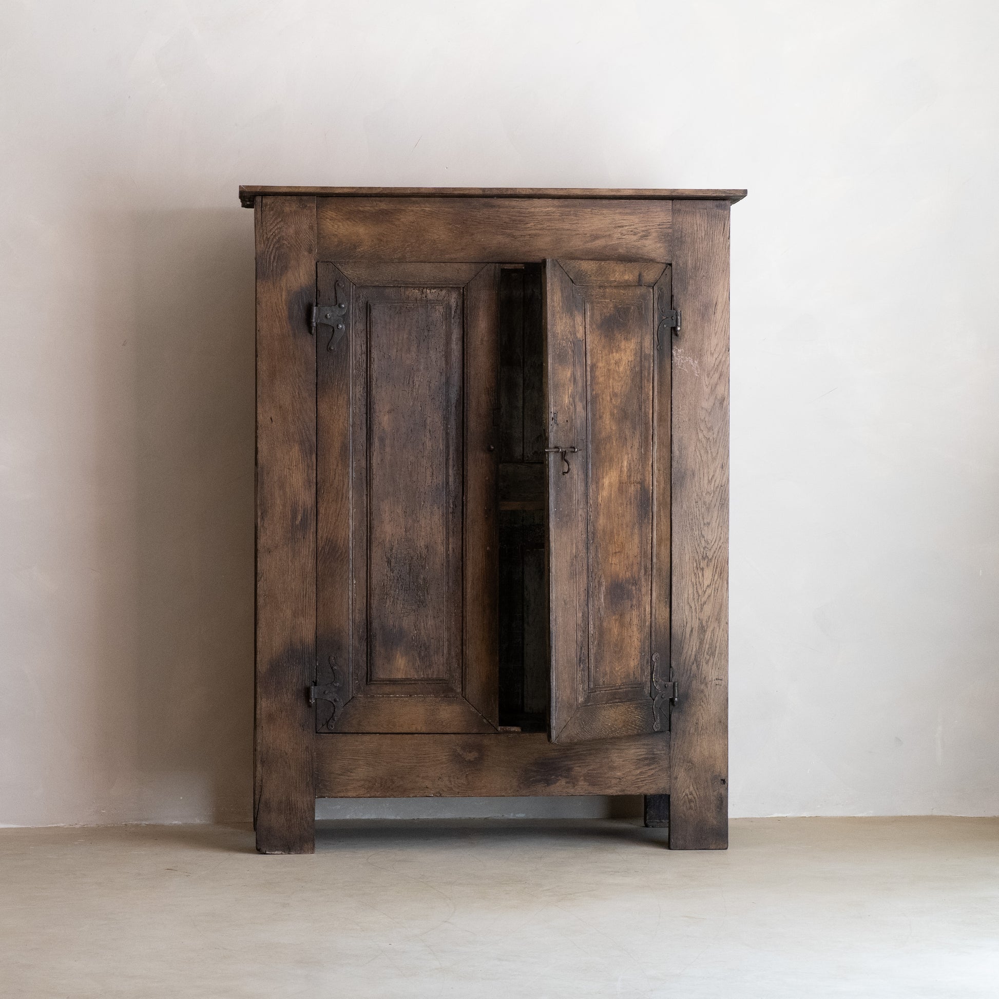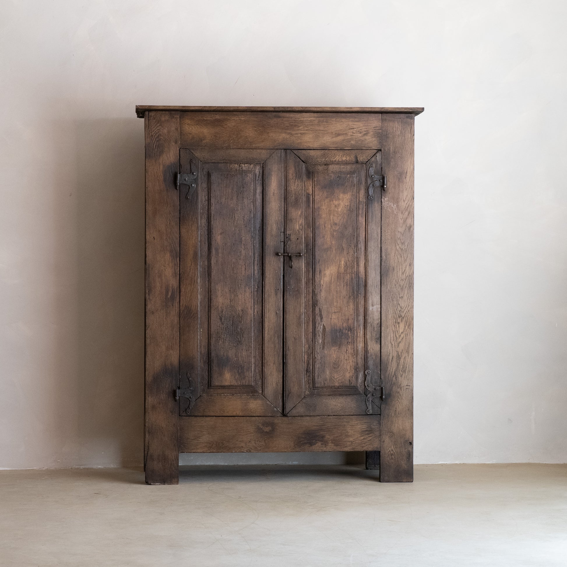 Armario antiguo original de caserío navarro del siglo XVIII, realizado en madera maciza con pátina y herrajes de forja originales.