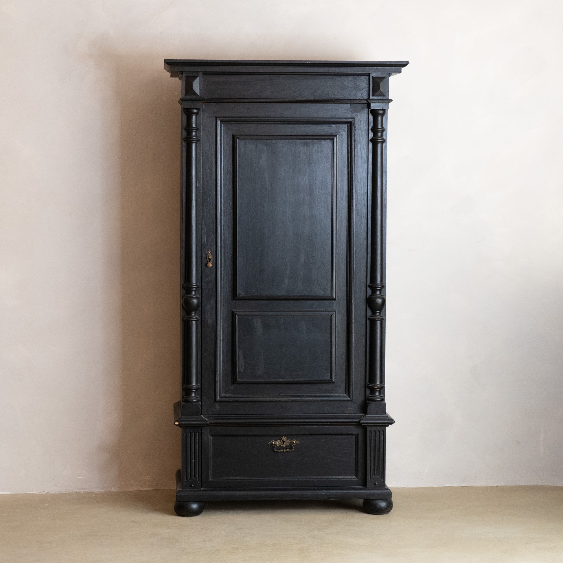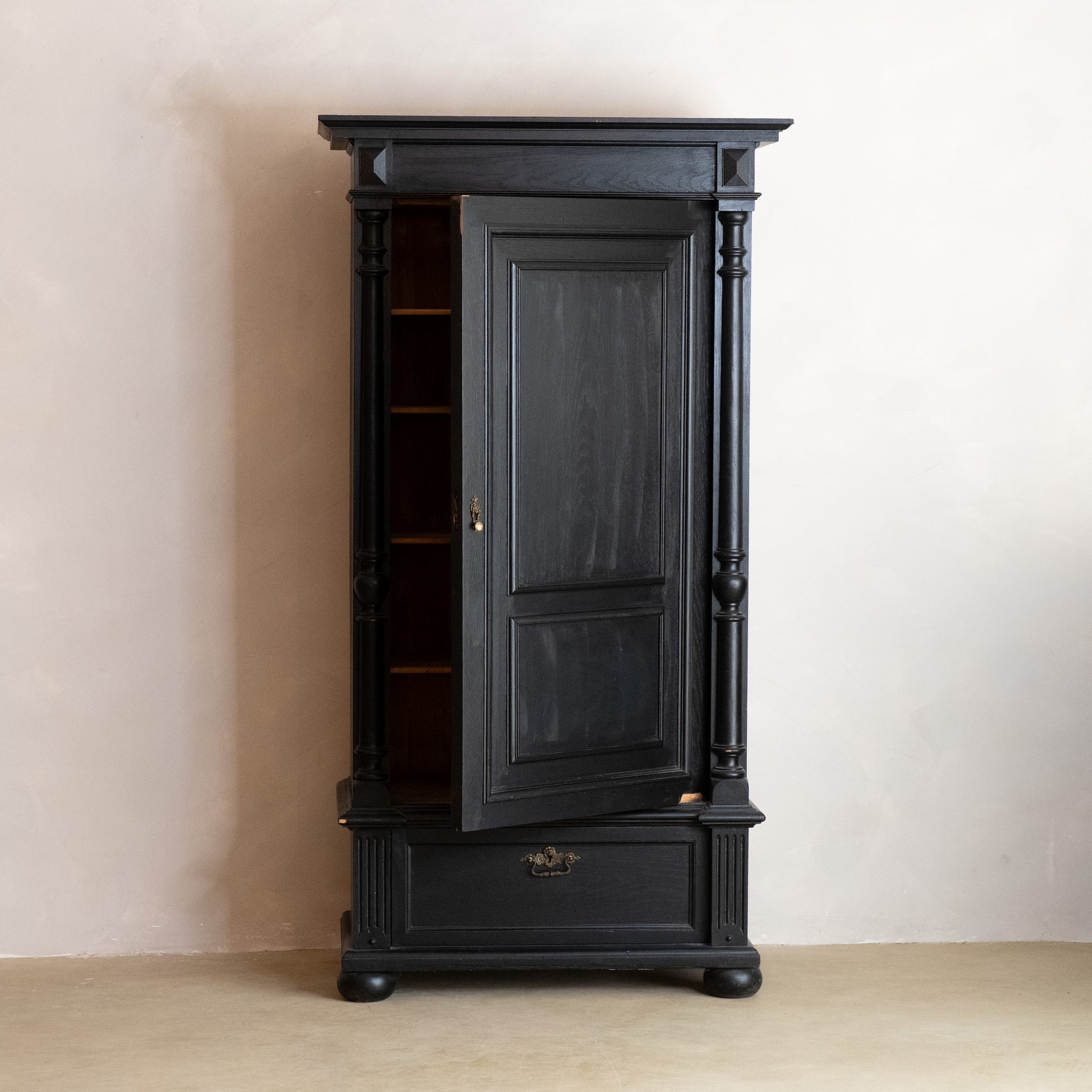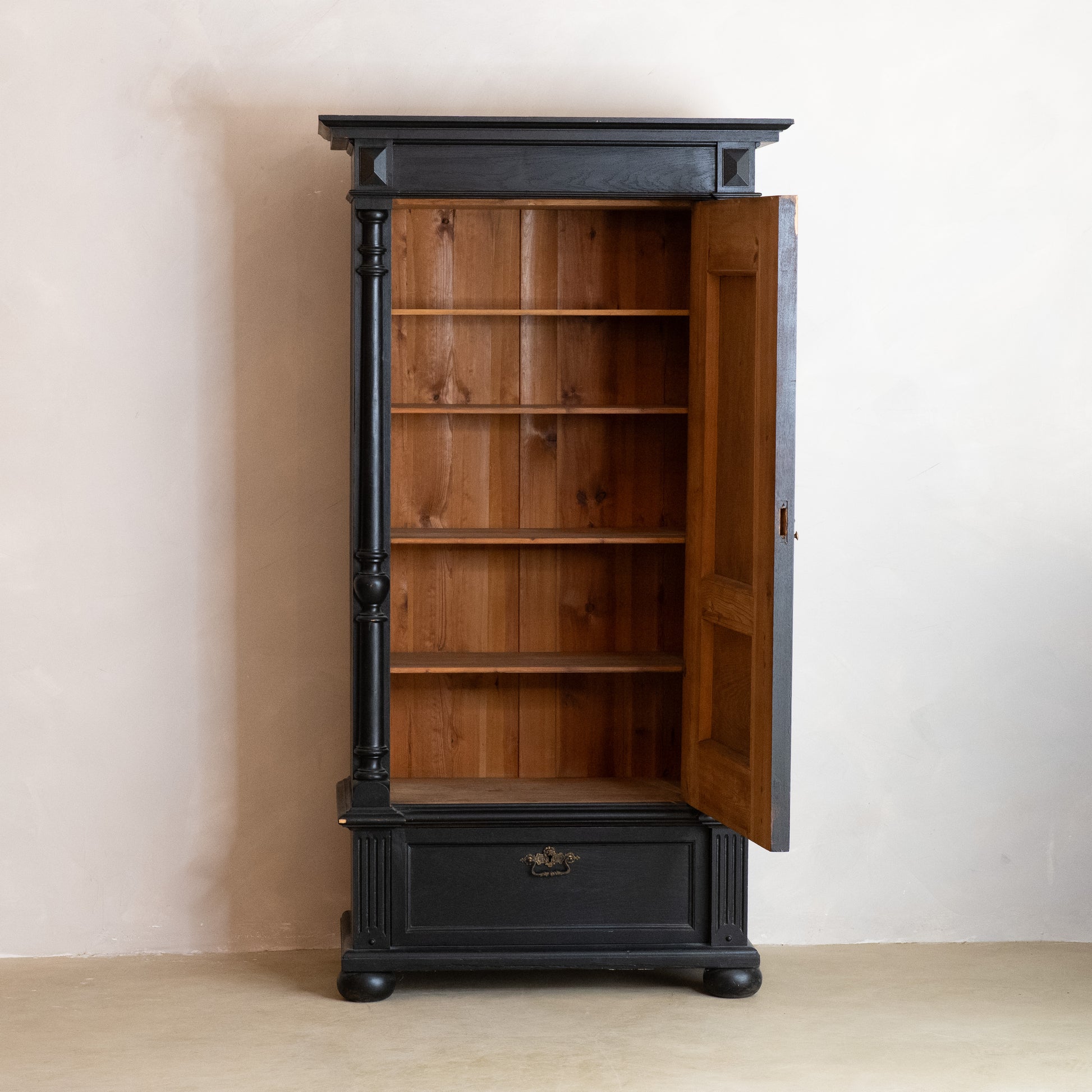 Despensa alta sueca original del siglo XIX, de pino ebonizado pintado de negro, de estilo gustaviano.