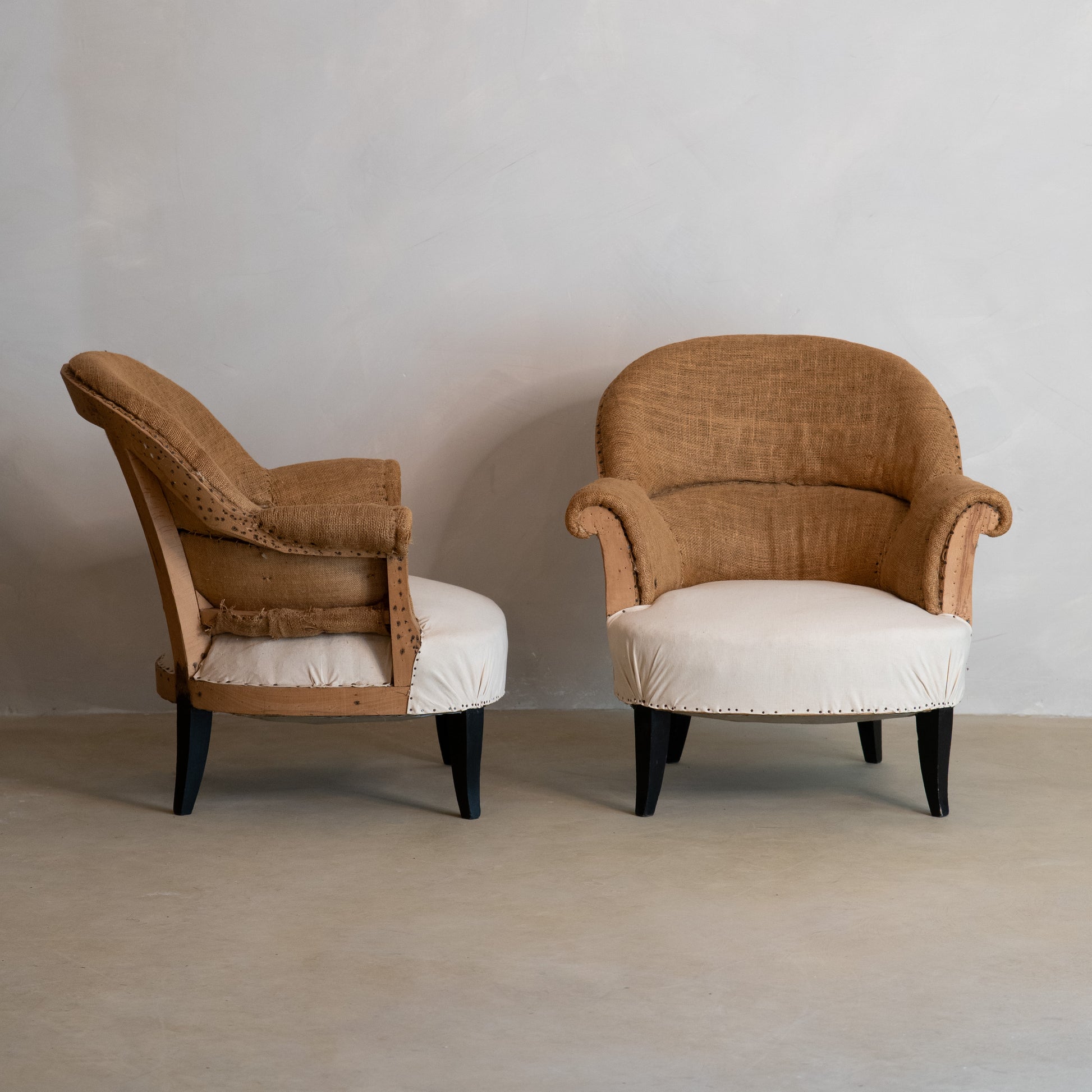 Par de sillones franceses del siglo XIX, de respaldo redondeado y proporciones delicadas, que evocan la elegancia y el encanto de otra época.