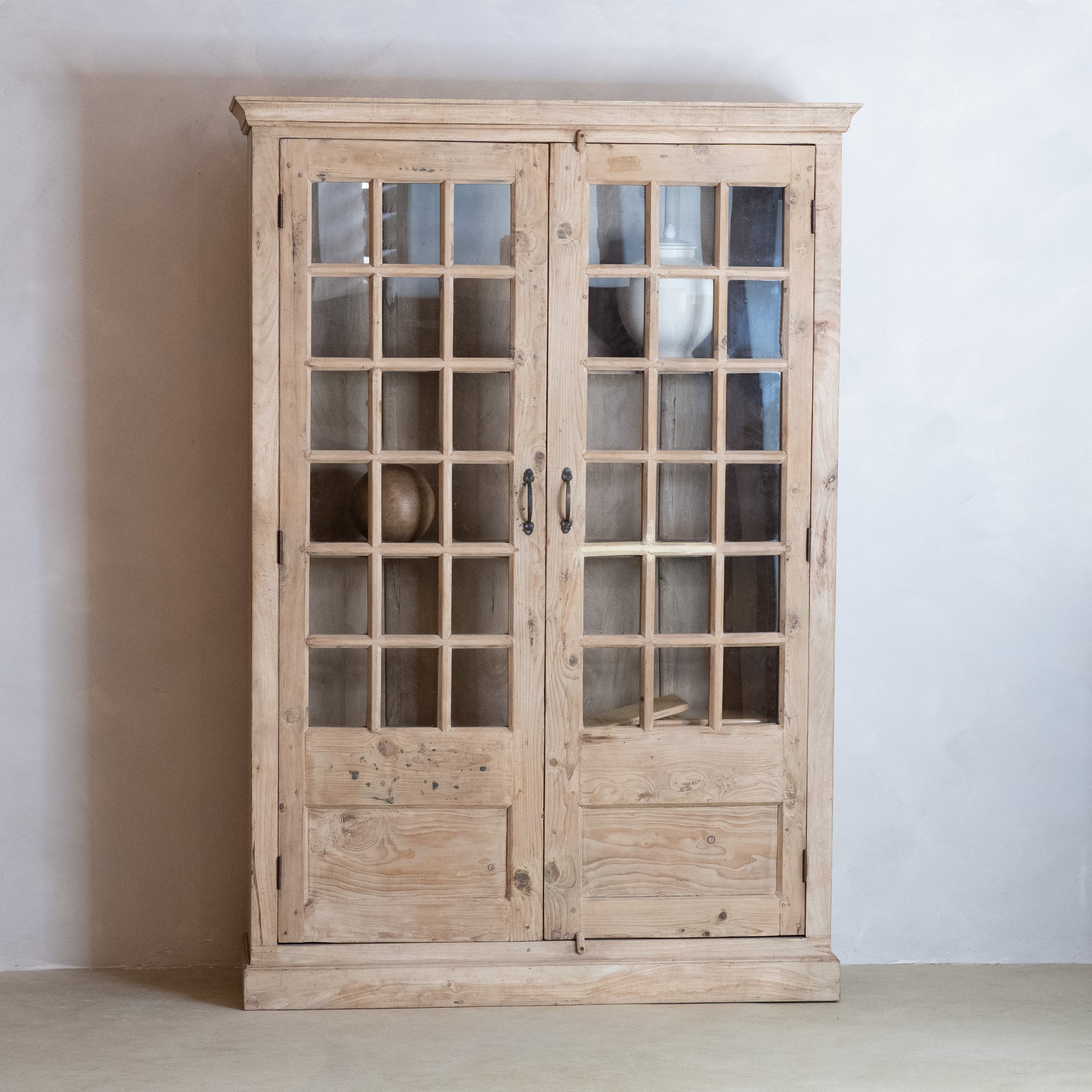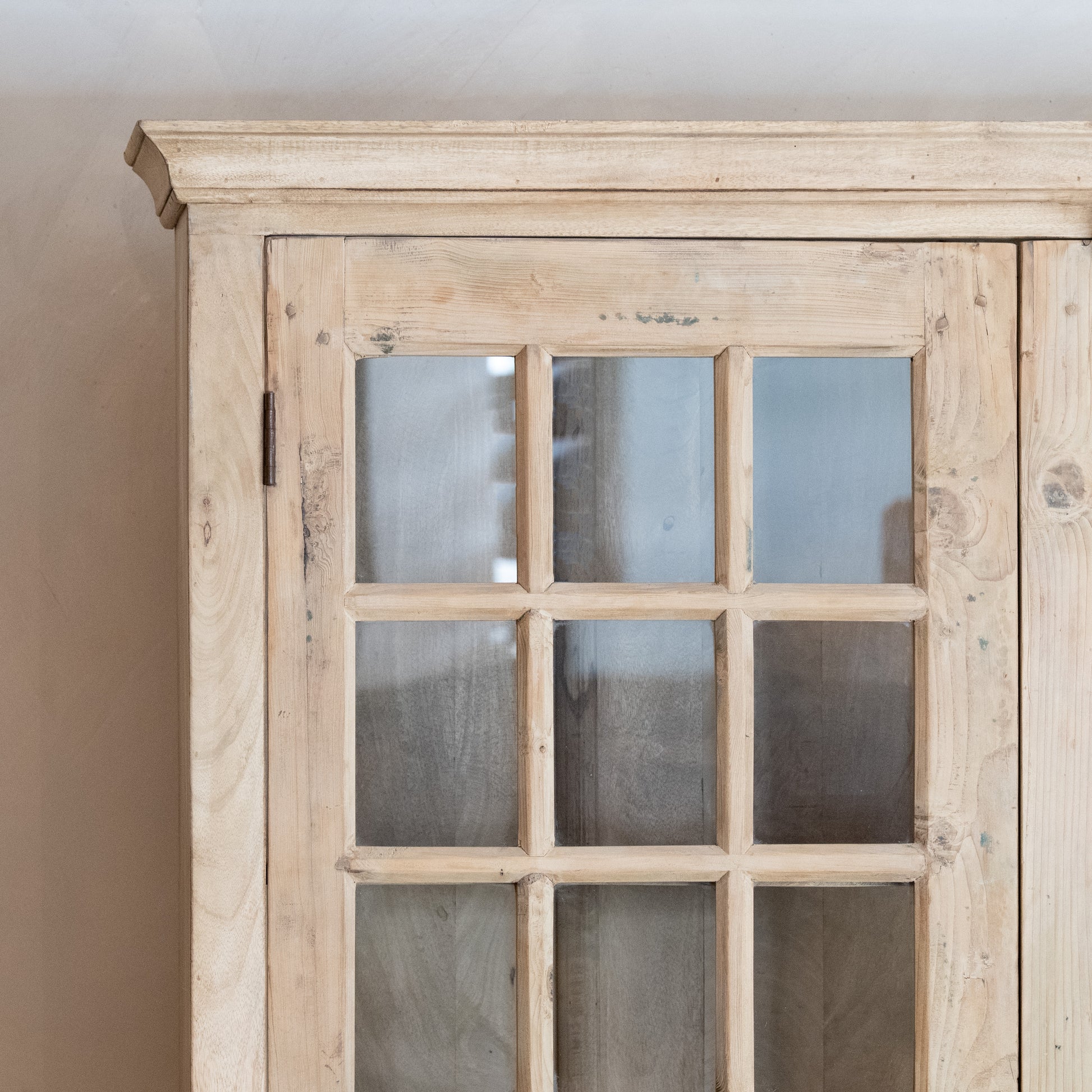 VITRINA RÚSTICA DE MADERA CON PUERTAS DE CRISTAL